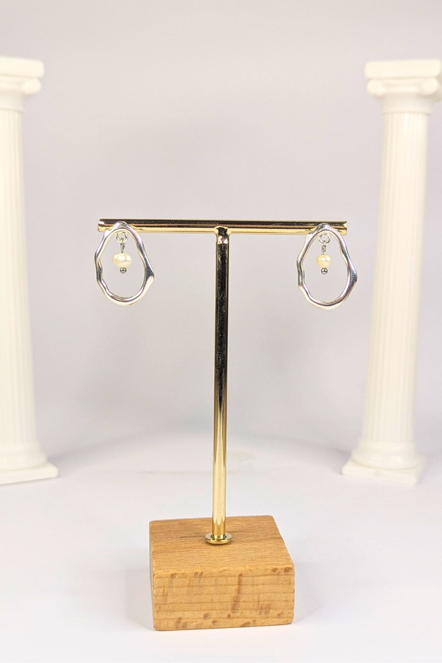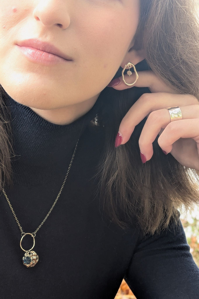 Ces clous d’oreilles gouttes martelées en argent fin viennent donner une élégance simple à une tenue. La perle d’eau douce baroque ajoute un éclat doux qui rappelle l'eau et ses trésors.